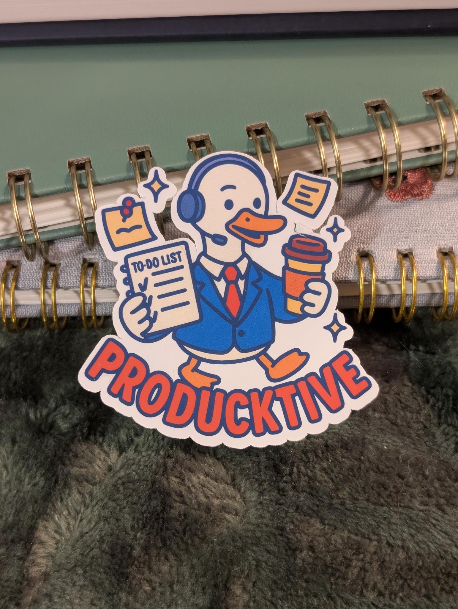 Meet the most productive little quacker in the universe. Coffee in one hand, chaos in the other, this overachieving duck is ready to dominate your to-do list with questionable efficiency and maximum attitude. Perfect for planners, office laptops, or anyone pretending to have their life together. 🦆💼✨