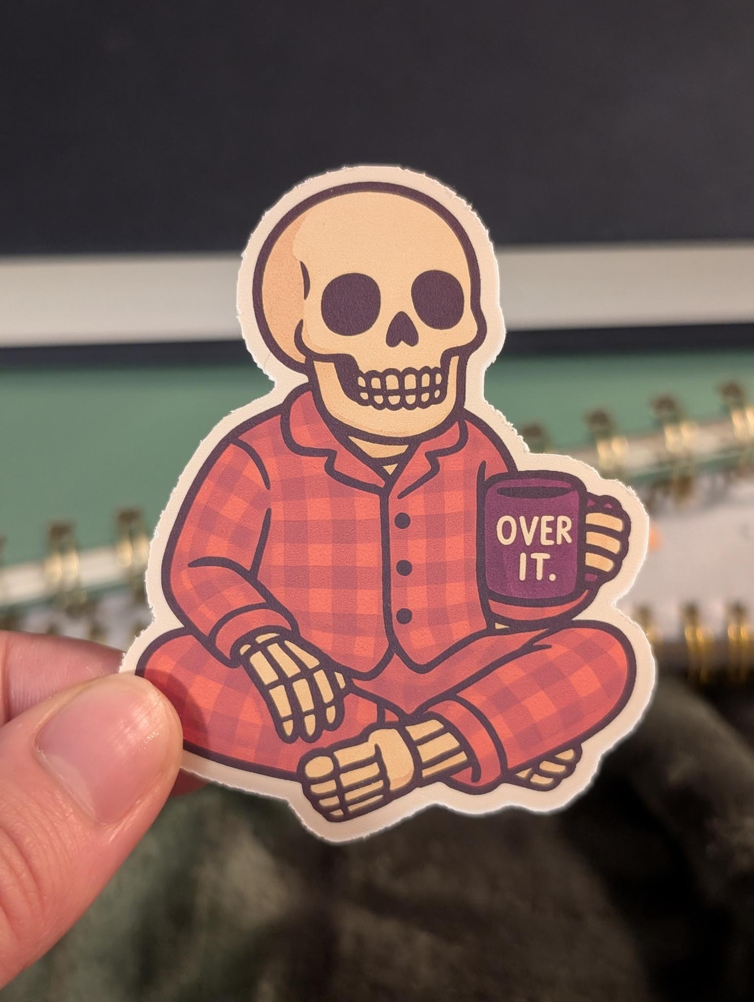 For the days when your soul has clocked out but your body is still expected to function. This cozy pajama-clad skeleton is the perfect companion for anyone who’s officially over it. Stick them on your planner, laptop, or water bottle as a gentle reminder that sometimes? Surviving the day is enough. ☕💀