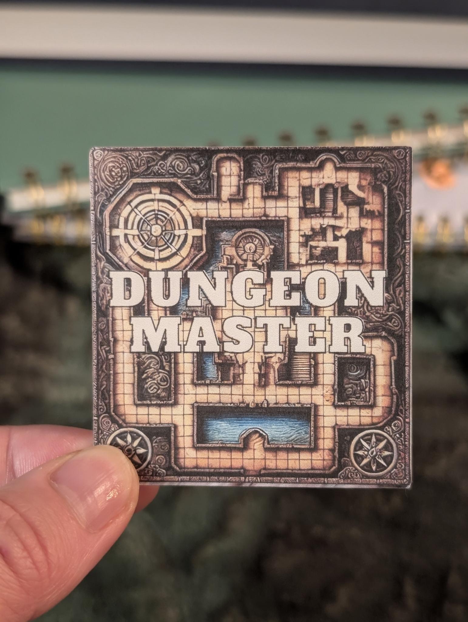 For the ruler of realms, the keeper of chaos, and the storyteller who decides everyone’s fate. This Dungeon Master sticker features a detailed dungeon map background, making it the perfect badge of honor for the one who guides adventurers straight into danger (with love, obviously). Stick it on your notebook, DM screen, laptop, or dice case and claim your rightful throne. 🗺️🎲
