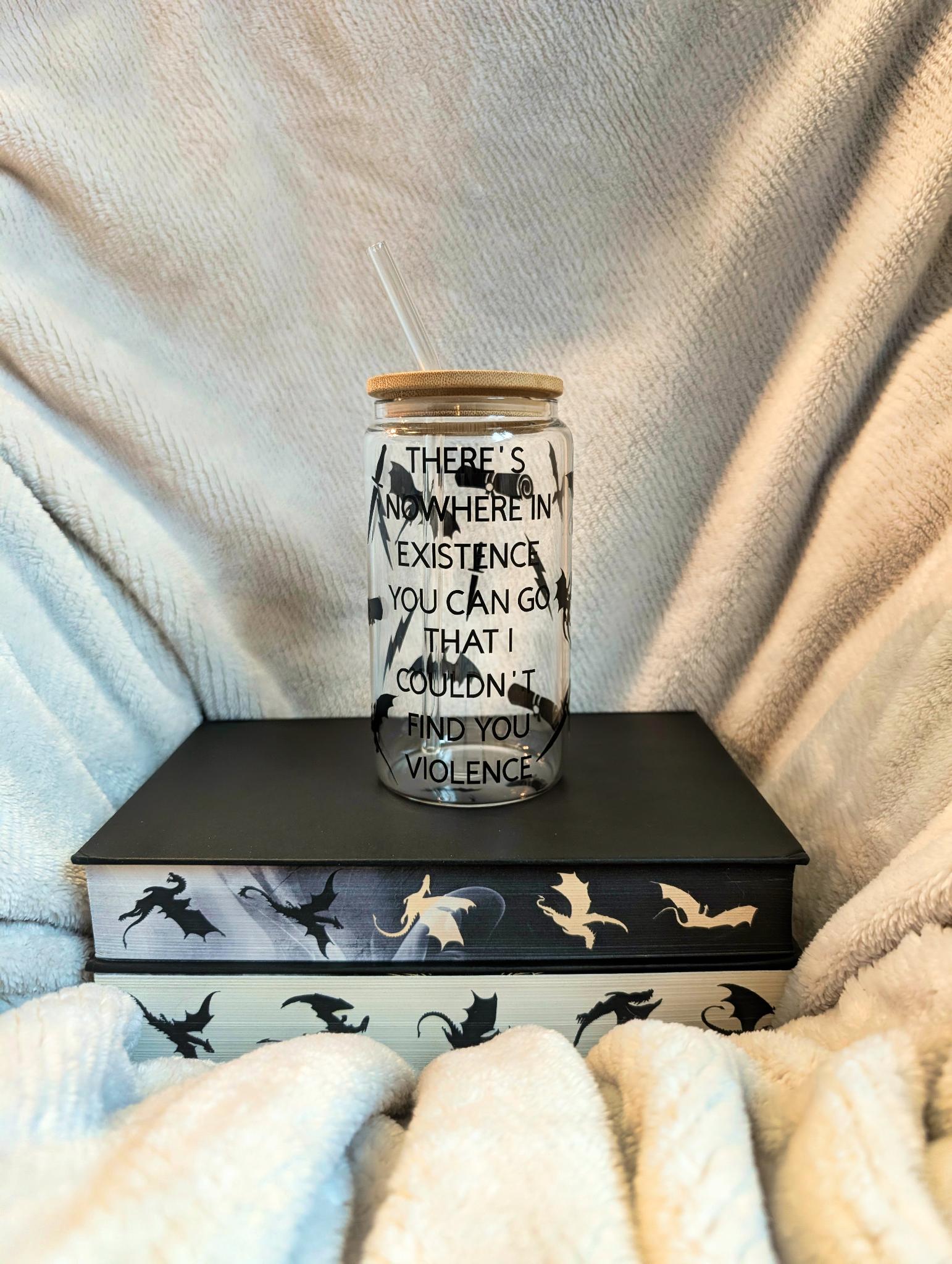 The Violence & Dragons Tumbler is inspired by the intense, addictive world of dragon riders and fearless heroines. Featuring a bold quote wrapped in shadowy dragon silhouettes, this design is made for readers who fell hard for that ruthless, high-stakes fantasy energy.